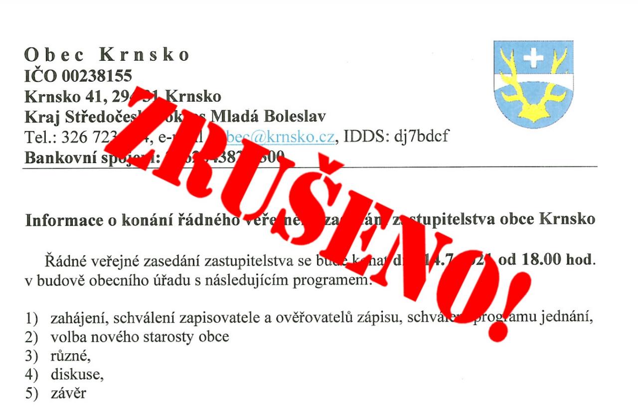 Plánované veřejné zasedání zastupitelstva bylo zrušeno