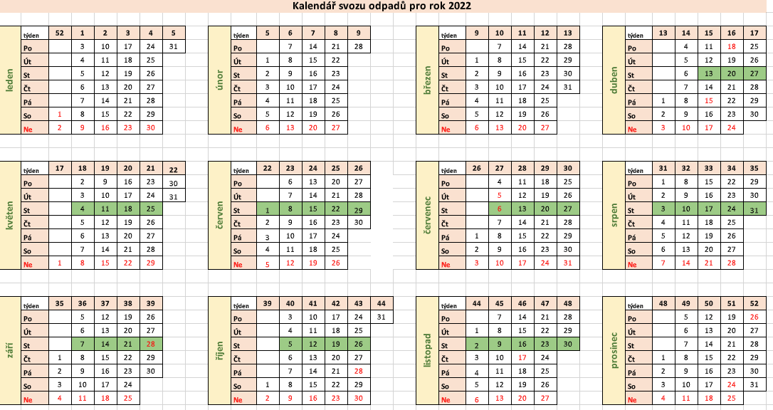 - Novým dnem svozu jsou středy a to počínaje dnem 13.04.2022.