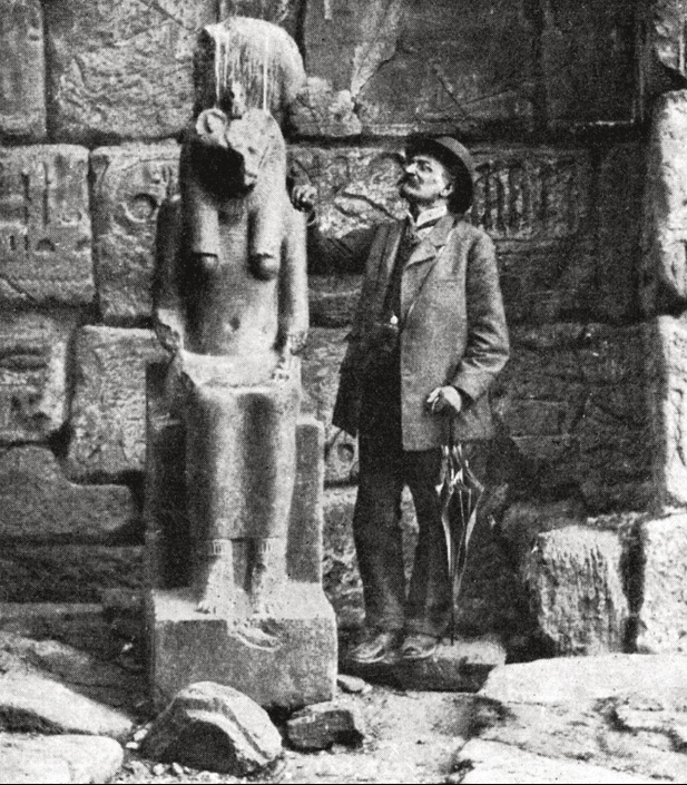 Josef Kořenský u sochy bohyně Sechmet v egyptských Thébách v roce 1910 / zdroj: reflex.cz